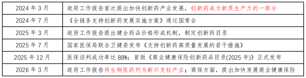 从2024年政府工作报告首次提出加快创新药产业发展开始,近两年一系列顶层设计为创新药发展筑牢根基。